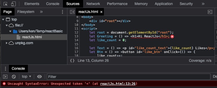 script에 type을 text/babel로 추가합니다.